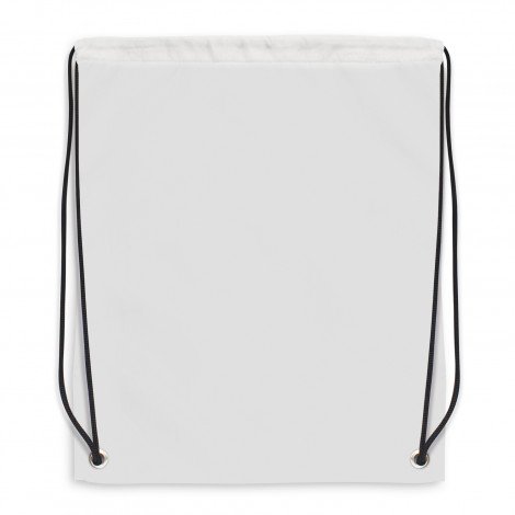 Robust medium-size drawstring backpack which is manufactured from 210D polyester and can be branded in spot colours or full colour on both sides at no extra cost. It has riveted metal eyelets at the base for added strength and black woven drawstrings. A production lead time of 20 working days applies to this product by air freight and larger orders can be sea freighted on request to reduce the freight cost.