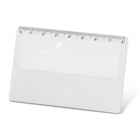 Handy credit card sized magnifier with an 8cm ruler on one edge.