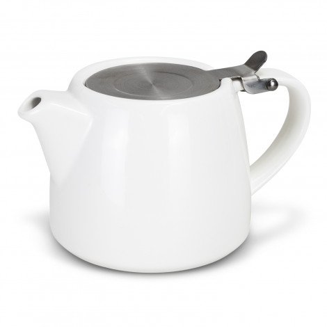 490ml glossy stoneware teapot with a stainless steel flip lid and removable tea infuser. This versatile teapot is perfect for hospitality and is presented in a white gift box.