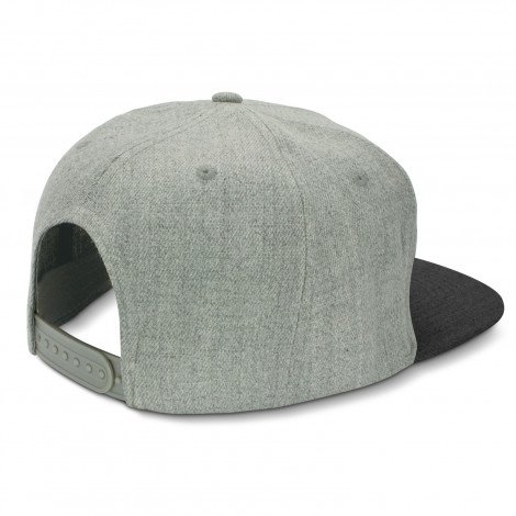 Premium structured six panel cap which is made from polyester. Features include a flat peak, embroidered eyelets, a sweatband and an adjustable snap back closure that allows one size to fit most people.
