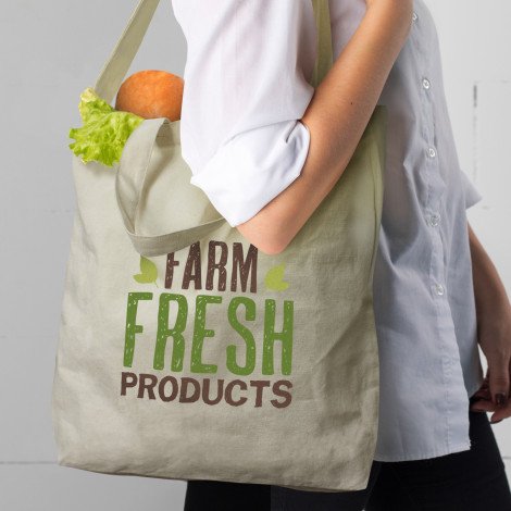 Versatile cotton bag with a large gusset which is manufactured from strong 220gsm natural cotton and can be carried on the shoulder or as a tote bag.