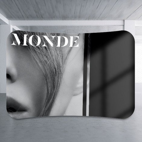 Draw attention to your event or business with an eye-catching knitted polyester curved media wall. The high-quality wall measures 3.0m x 2.2m. This product can be branded either on one side or both via full-colour sublimation and has a lead time of 14 working days.