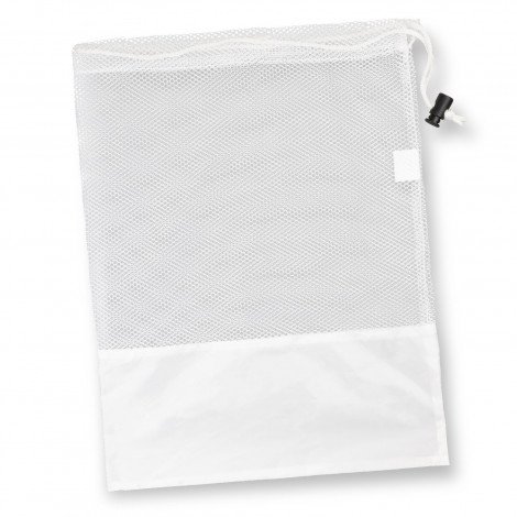 Drawstring bag which is manufactured from Mesh and 190T Polyester. It features an insert at the bottom and a drawstring at the top to keep belongings secure inside it. Because it uses mesh, the bag is breathable as well as being the perfect size for storage, to put your laundry in whilst travelling or as a convenient shoe bag when your out and about.
