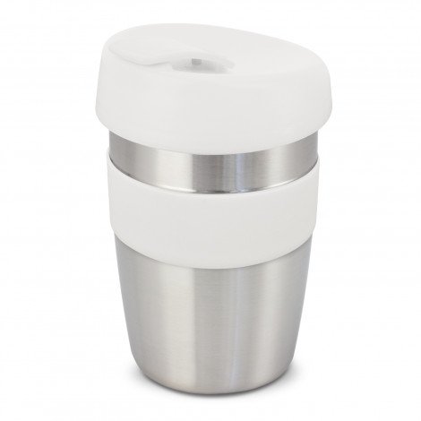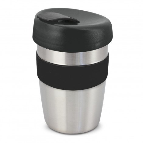 Design inspired 350ml double wall reusable coffee cup which will keep drinks hot for longer and remain cool to hold. It has a heat-resistant silicone band and a secure screw on lid with a splashproof flip closure. The cup has a stainless steel outer wall and the inner wall, lid and flip closure are manufactured from polypropylene. All the materials used are BPA-free. The cup, lid, flip closure and band can be mixed and matched in any colour combination from the standard colours. Up to five different colour combinations are included in the price and more are available for an additional charge. It is presented in a natural gift box. This product is not dishwasher safe and handwashing is recommended. Express Cup Elite is protected under New Zealand Design Registration No. 419451 and Australian Design Registration No. 361937.