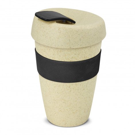 Unique 480ml reusable coffee cup which is manufactured from a 50/50 blend of natural rice husk fibre and BPA-free polypropylene. It has a heat-resistant silicone band and a secure screw on lid with a splashproof flip closure. The flip closure and silicone band can be mixed and matched in any colour combination from the colour palette at no extra cost. Up to five different colour combinations are included in the price and more are available for an additional charge. An optional natural gift box is available on request. This product is not dishwasher safe and handwashing is recommended. Express Cup - Natural is protected under New Zealand Design Registration No. 419451 and Australian Design Registration No. 361937.