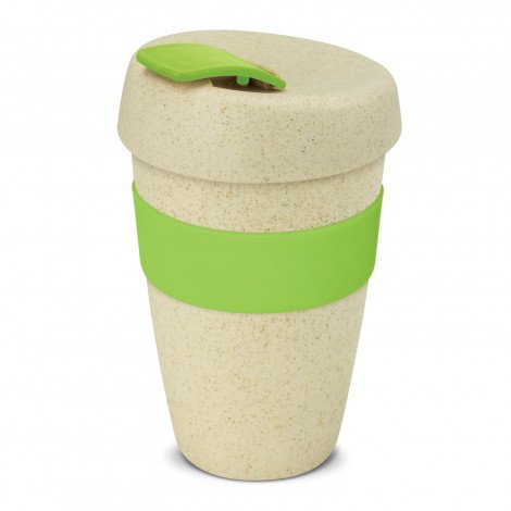 Unique 480ml reusable coffee cup which is manufactured from a 50/50 blend of natural rice husk fibre and BPA-free polypropylene. It has a heat-resistant silicone band and a secure screw on lid with a splashproof flip closure. The flip closure and silicone band can be mixed and matched in any colour combination from the colour palette at no extra cost. Up to five different colour combinations are included in the price and more are available for an additional charge. An optional natural gift box is available on request. This product is not dishwasher safe and handwashing is recommended. Express Cup – Natural is protected under New Zealand Design Registration No. 419451 and Australian Design Registration No. 361937.