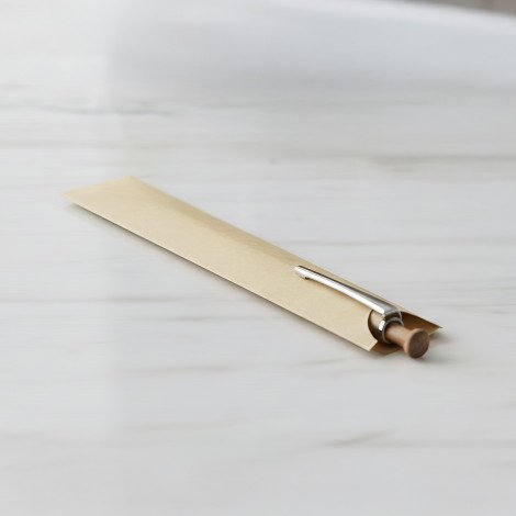 Kraft paper pen sleeve which offers an affordable alternative to individual poly bags for pen presentation. It is supplied unbranded.