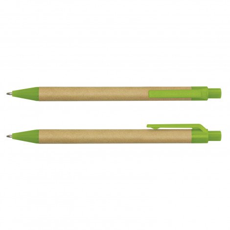 Retractable ballpoint pen with a recycled cardboard barrel. It has a blue refill with 1000 metres of German manufactured Dokumental ink and it can be presented in an optional pen sleeve.