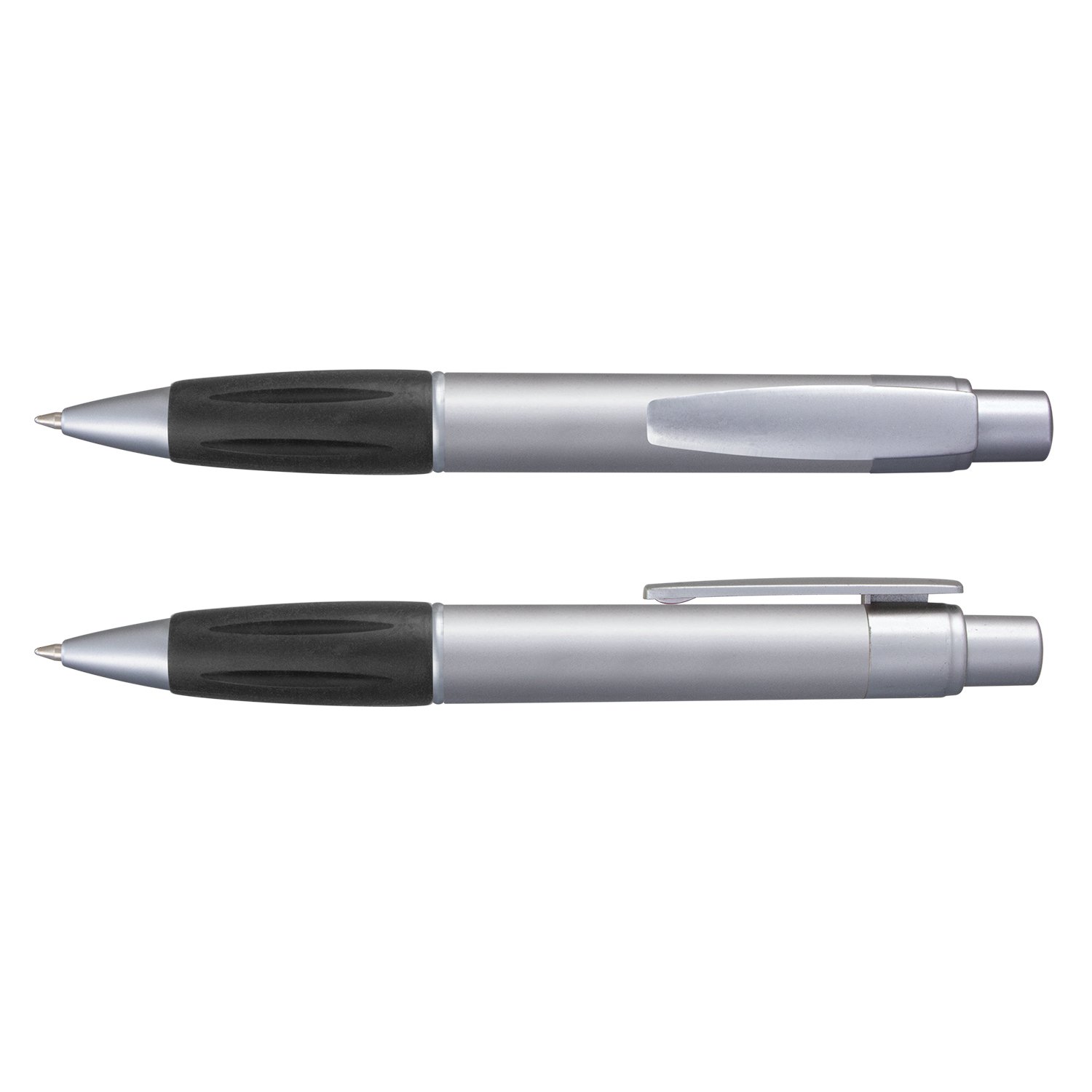 Retractable plastic ballpoint pen with a soft rubber grip, a metallic barrel and metallic silver trim. It has a blue large volume refill with 1800 metres of German manufactured Dokumental ink and can be presented in an optional pen sleeve.