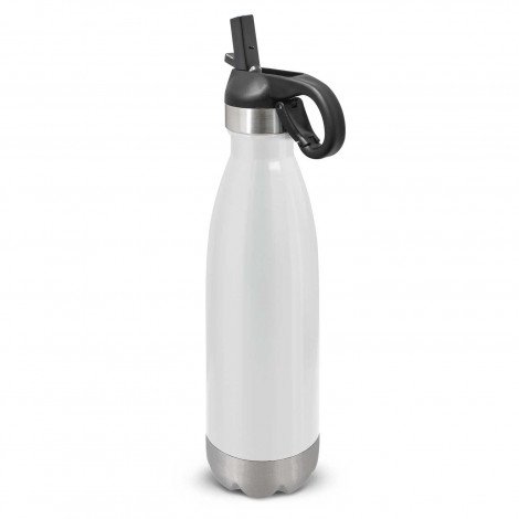Trendy 700ml stainless steel drink bottle with a timeless design. It has a secure screw on lid which has a flip out drinking valve with a straw and a removable silicone mouth piece. The lid also has a convenient carry handle with a spring loaded carabiner clip. Mirage bottle laser engraves to a shiny steel finish, except for the silver bottle which engraves to a natural etch. Mirage is BPA-free and can be presented in an optional natural gift box. This product is not dishwasher safe and handwashing is recommended.