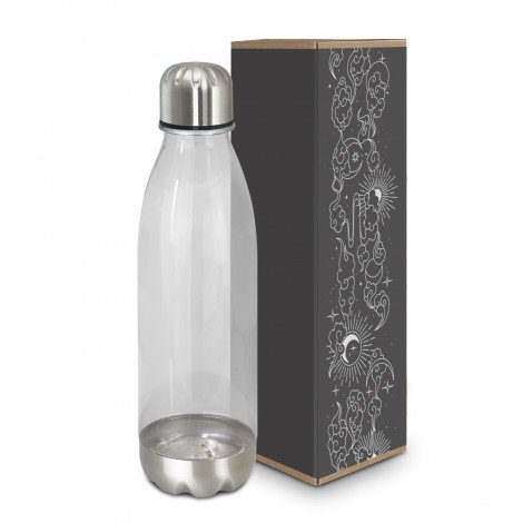 Trendy 700ml translucent drink bottle with a timeless design. It is manufactured from co-polyester which is odor-resistant and BPA-free. Mirage has a secure screw-on stainless steel lid, and a smart stainless steel base and can be presented in an optional natural gift box. This product is not dishwasher safe and handwashing is recommended.