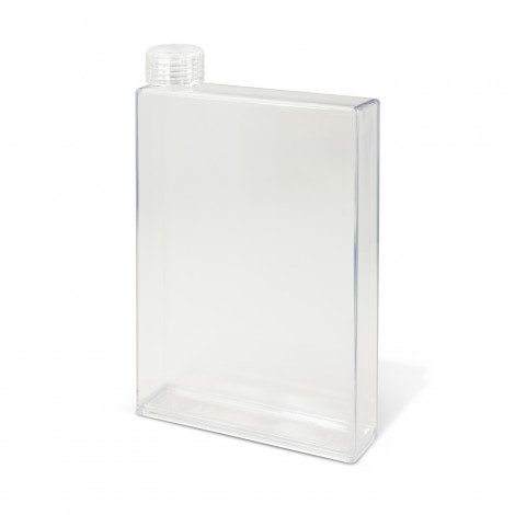Futuristic 500ml water bottle which is shaped like a notebook with a secure screw on lid. It is manufactured from crystal clear PS which is BPA-free. The bottle is designed to slide easily into bags alongside books, laptops and folders etc. It can also be conveniently carried in one hand along with a tablet or a notebook. This product is not dishwasher safe and handwashing is recommended.