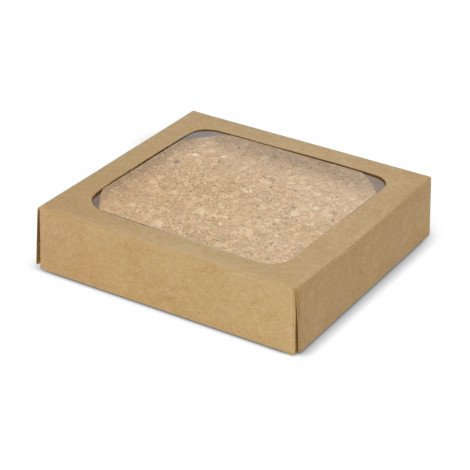Set of four stylish natural cork coasters that provide protection from heat and spills. When cork is harvested only the outer bark is removed from the tree. This allows the tree to continue growing and replenishing the bark. It also has the benefit of a comfortable soft-touch texture while being very durable. This set is nicely presented in a natural cardboard gift box with a window to show off the brand.