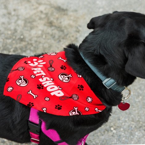 Lightweight large polyester pet bandana which can be branded in spot colours or full colour on one side. A production lead time of 20 working days applies to this product.