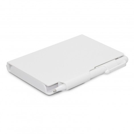 Pocket-size (approximately A6) notebook in a compact plastic case which has a pen that locks the case closed when it is inserted in the pen holder. It has a pad with 80 leaves of unlined paper.