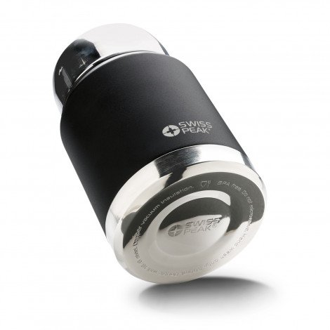 Premium 500ml double wall, vacuum insulated stainless steel food flask. It has a unique copper lining on the inner wall which improves its performance and the outer wall has a tough powder coated finish. Elite will keep food hot for up to 12 hours and cold for up to 24 hours. It has a screw on serving bowl and a foldable stainless steel spoon which snaps securely into the lid. This precision vacuum flask is BPA-free and laser engraves to a shiny steel finish. It is presented in a Swiss Peak gift box with an information leaflet included. This product is not dishwasher safe and handwashing is recommended.