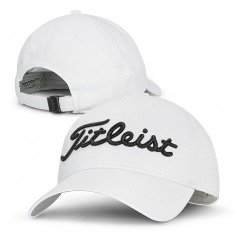 Look and feel like a golf pro with the Titleist Tour Performance Cap. Made from moisture-wicking material which reduces odour, the cap offers anti-microbial technology and UV sun protection. The six panel cap has a pre-curved peak, embroidered eyelets for improved airflow and an absorbent sweatband. The Titleist logo is boldly branded on the front with stunning 3D embroidery and the adjustable stretch clasp closure allows one size to fit most people. The cap can be tastefully co-branded on one or both of the back panels. Please note this product cannot be supplied without the Titleist logo.