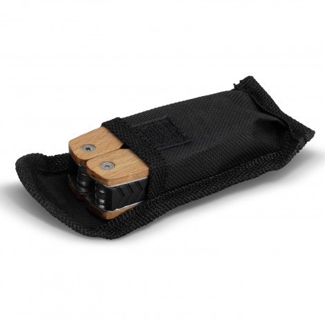 Compact 9-function multi-tool which opens out to reveal spring-loaded pliers and eight additional tools for everyday use: a knife, can opener, saw, flat, slotted and Phillips screwdriver, bottle opener, and a nail file. The Beech wood handles add a stylish element, and the tool is supplied in a carry pouch with a Velcro closure and a belt loop.